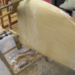 Nach dieser Aktion wird der Rumpf mehrmals grundiert, geschliffen, und vorlackiert, geschliffen und mit Wasserbeständigen