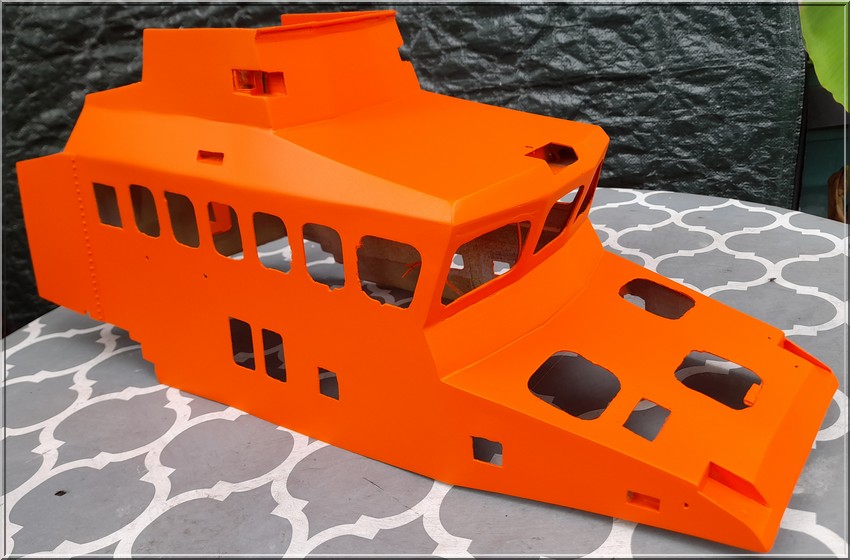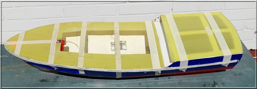Der Rumpf besteht aus einem Epoxidharz-Glasfaser-Formteil. Der Kiel ist aus drei vorgeschnittenen 3 mm Buchenholzlagen gefertigt , der Bug aus drei vorgeschnittenen Birnenholzlagen. Die Innenbeplankung besteht aus 1,5 mm starken, vorgeschnittenen Styrolplatten. Spanten und Spanten sind aus Styrolstreifen. Die Roste sind aus 3,5 mm × 3,5 mm starken, vorgeschnittenen Lindenholzleisten zusammengesetzt (nicht abgebildet). Decks und Bodenplanken sind aus 1,5 mm starkem Lindenholz gefertigt.